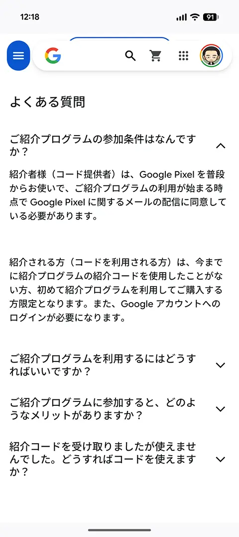 Googleストアにて、Pixel紹介プログラムが開始されました。GoogleストアでPixelスマホを購入時に紹介コードを使用すると10%引きで購入できます。以前も2回ほど同じプログラムがあり、そのときに紹介コードを使って購入した場合は対象外となります。