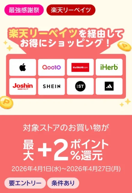 「楽天市場」で対象アイテムが半額以上割引になるクーポンや、「楽天リーベイツ(Rebates)」アプリ経由の購入で最大1,000ポイント還元などの特典のほか、「Rakuten Link」アプリ内に表示されるバナーをタップすると先着でファミリーマートのたっぷりクリームのダブルシュー無料引換券がもらえる企画もあります。