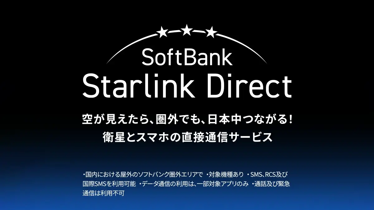ソフトバンクは4月10日より衛星とスマートフォンの直接通信サービス「SoftBank Starlink Direct」を提供開始しました。ソフトバンク、ワイモバイル、LINEMOの各サービスで利用できます。