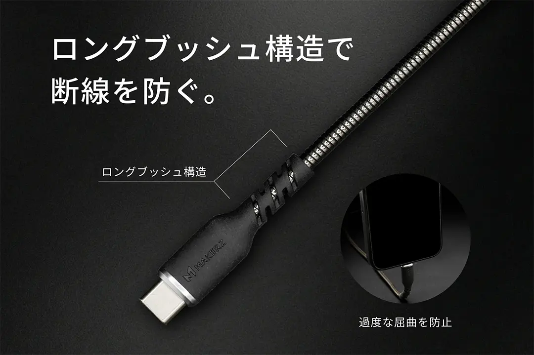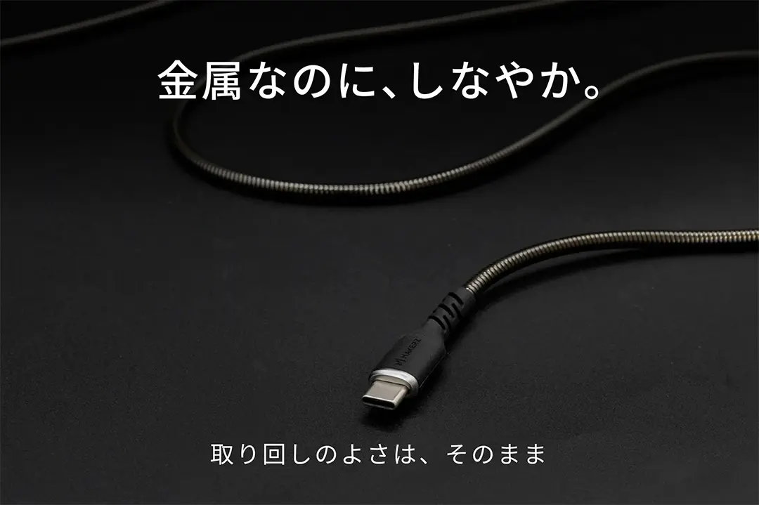 メイカーズは4月27日、ステンレスを外皮に採用した金属スパイラルケーブル「SOLIDZ Power Cable」をAmazonにて販売開始しました。金属スパイラル構造とロングブッシュ構造の組み合わせにより、断線しにくい設計と、金属ならではのしなやかさを両立したUSBケーブルです。