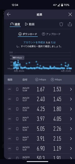- 格安SIMの速度測定 2026年4月前半:mineoの調子が良く、U-NEXT MOBILEと日本通信SIMはイマイチ
