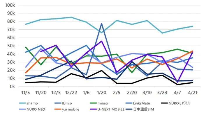 - 格安SIMの速度測定 2025年4月後半:ahamoとmineoの調子がまた上がってきた?