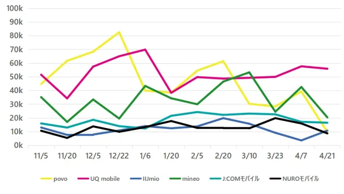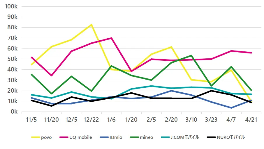 | UQ mobile | 55833 | 21.34 | 5.23 | 164 | 73.8 | 93.6 |