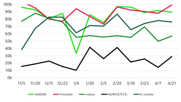 | NUROモバイル | 28762 | 2.33 | 8.06 | 143 | 34.7 | 112.2 |