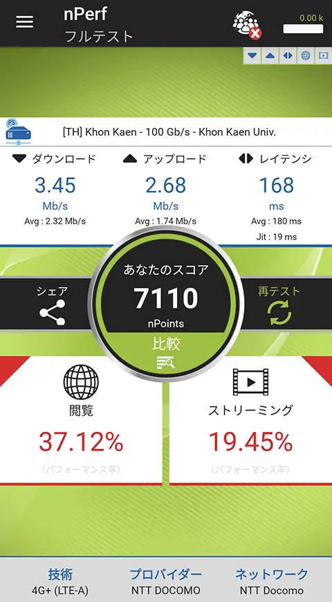 LinksMateは最近Speedtest.netがかなり速いです。ただnPerfの値が奮わず、Speedtest.netの値との差が出てきてます。おそらく動画視聴時に制限がかかっていて、それでポイントが伸びないのだと思います。