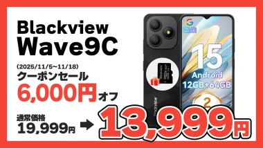 【広告】Blackview Wave9Cがクーポンで6,000円引きの13,999円!6.56インチ画面の低価格スマホ