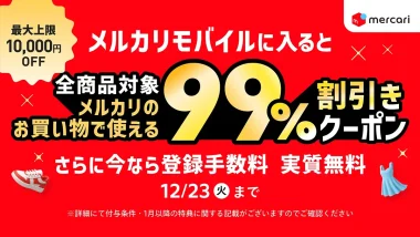 メルカリモバイル、初めての申込でメルカリで使える99%割引きクーポン(最大上限10,000円)もらえる