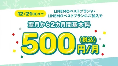 LINEMO、月額基本料500円で2ヶ月間使える!12月21日まで【LINEMO週穫祭】