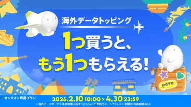 povo、海外データトッピングを買うと、もう1つもらえる「海外ローミングキャンペーン」開始