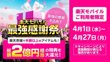楽天モバイルが契約者向けに「春の楽天モバイル 最強感謝祭」を開催!