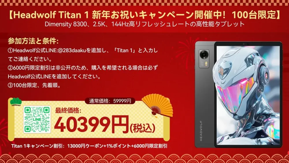 【広告】100台限定で8.8インチタブレット「Headwolf Titan1」がLINE友だち登録で最終価格40,999円!