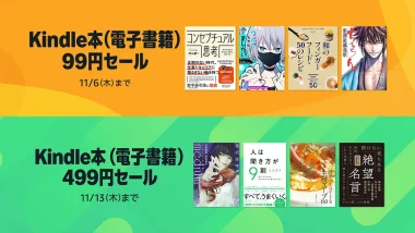 Kindleストアにて99円セール(11月6日まで)と499円セール(11月13日まで)が開催中!