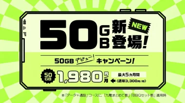 QTモバイル、50GBプランを10月1日より開始!最大5ヶ月間1,980円~のキャンペーンも