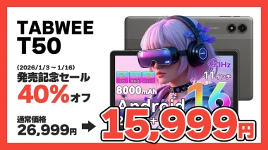 【広告】Android 16の11インチタブレット「Tabwee T50」が発売記念で40%オフの15,999円!