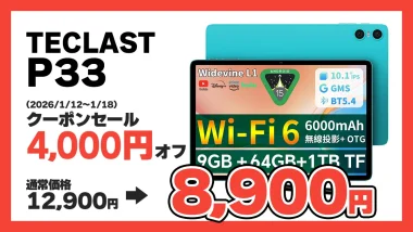 【広告】Android 15 Go搭載のTECLAST P33がクーポン割り引き8,900円の特価セール!